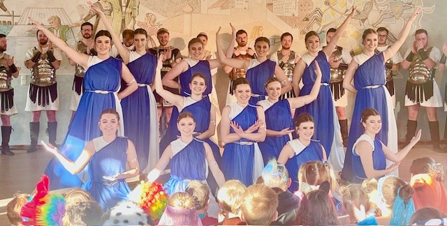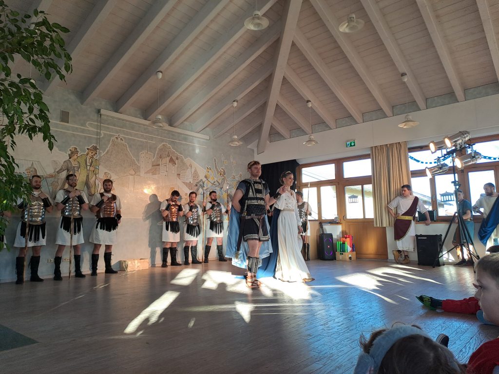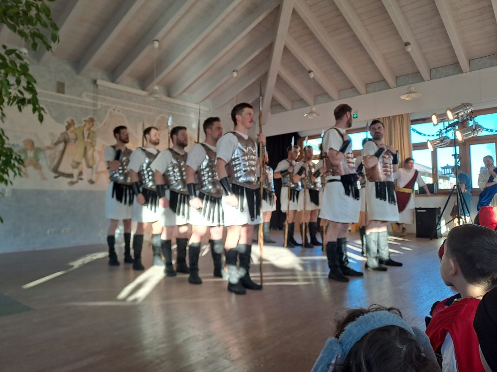 Für das diesjährige Motto, „Antikes Griechenland“. hatte sich die gesamte Schulfamilie natürlich wieder eine tolle Schulhausdekoration einfallen lassen. Im WG Unterricht wurden Griechische Tempel und antike Amphoren hergestellt und alles mit weiß-blauen Girlanden verziert. Die 4. Klasse hatte sich im Vorfeld mit den Göttern des Olymps vertraut gemacht und vieles über die Errungenschaften der antiken Denker und Philosophen erfahren.