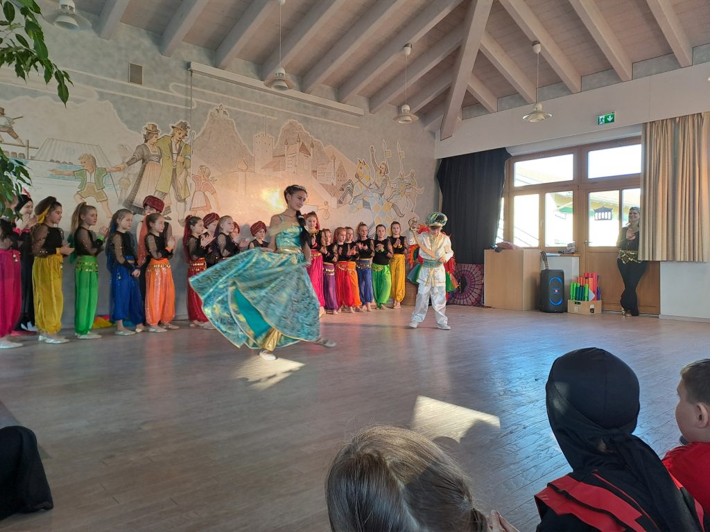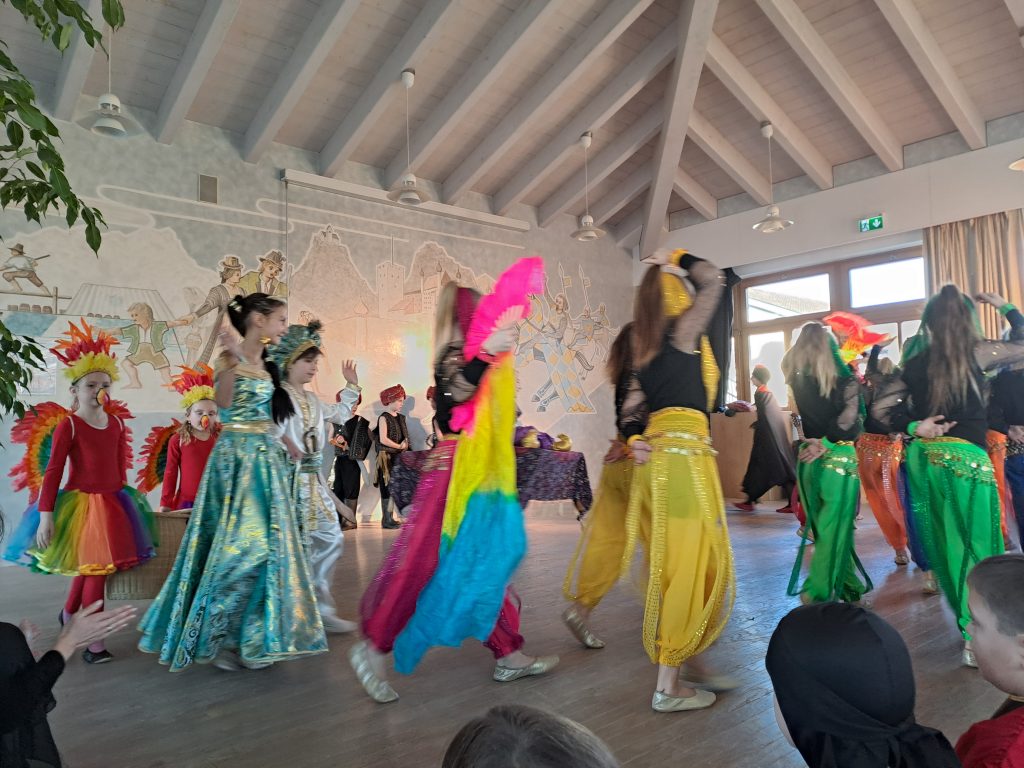 Nun war die Kindergarde an der Reihe und wir ließen uns entführen in „Arabische Nächte“. Alle waren begeistert von der professionellen und farbenprächtigen Darbietung. Viele unserer Schüler und Schülerinnen der 3. und 4. Klasse waren aktiv und voller Elan in der Garde dabei und die freudige Aufregung trug sie durch die gesamte Faschingszeit. Was für ein großer Aufwand da betrieben wird seitens der Leiterinnen, ist wirklich überaus beachtlich und Teil dessen gewesen zu sein, wird für alle Kinder ihr Leben lang unvergesslich bleiben.