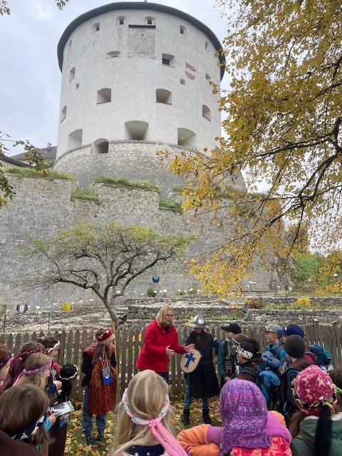 Am Freitag packten wir unsere Sachen, räumten die Zimmer und liefen zum Zug, der uns nach Kufstein brachte. Wir trafen Lisbeth, die uns durch die Kufsteiner Festung führte. Wir verkleideten uns und erkundeten das Gelände. Besonders beeindruckend war, der Heldenorgel zu lauschen und durch den langen Geheimgang zu gehen. Schließlich durften wir den Krieg zwischen Bayern und Österreich sogar nachspielen. Anschließend fuhren wir zurück nach Flintsbach, wo uns unsere Eltern schon empfingen.
