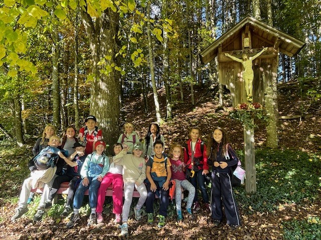 Am 15. Oktober fuhren wir, die Klasse 3a, mit Frau Selmayr, Frau Schoenleber und Frau Mayer mit dem Zug nach Oberaudorf und stiegen hinauf zum Schauerhaus.