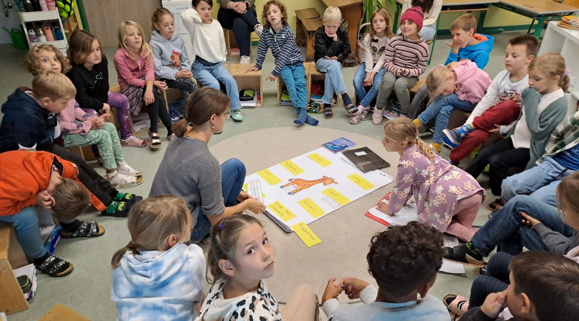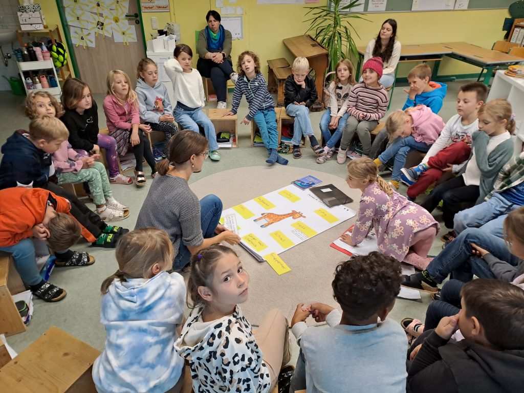 Im Rahmen der Sozialarbeit an unserer Grundschule besucht unsere Sozialpädagogin Caro die 2., 3. und 4. Klassen und arbeitet dort mit den Kindern zum Thema „Giraffensprache“. Die Schülerinnen und Schüler lernen zunächst die besonderen Eigenschaften der Giraffe kennen – ihr großes Herz, ihr wacher Blick und ihren weiten Überblick.