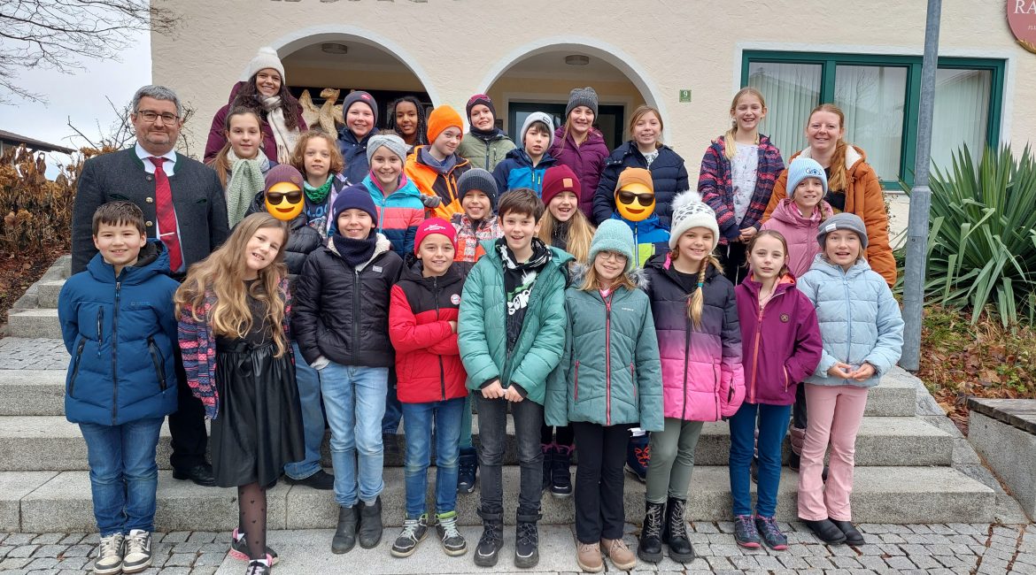Zum Themenabschluss stand der Besuch im Rathaus an. Der 1. Bürgermeister, Stefan Lederwascher, nahm die Klasse freudig in Empfang. Dann wurden nacheinander alle Büros besichtigt und die Mitarbeiterinnen und Mitarbeiter kennengelernt.