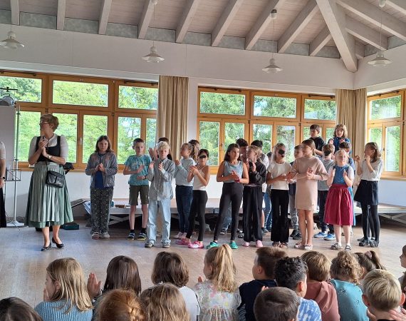 Verabschiedung der 4. Klässler Am letzten Schultag findet an unserer Schule traditionell die Verabschiedung der Viertklässler in der Aula statt. Daran nahmen dieses Jahr neben allen Lehrerinnen und Schülern und Schülerinnen auch besonders viele Eltern teil. Frau Selmayr hielt zu Beginn eine feierliche Ansprache. Nach einem rührenden, mit teils selbst...